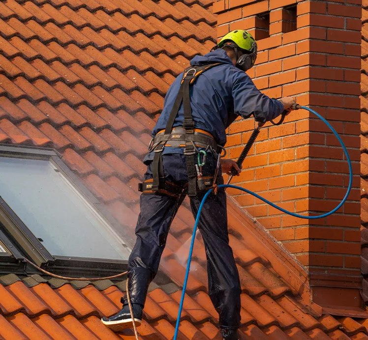 Dachreinigung ab sofort mit Heißwasser und mit bis zu 350 Bar Druck.
