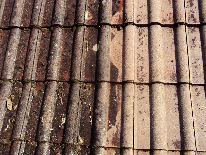 Betonpfannen zum Beispiel sind rau und offenporig im Gegensatz zu Dachziegel aus Ton. Die Oberfläche ist teilweise mit farbigem Granulat beschichtet und daher leicht sandig. Durch Witterungseinflüsse verliert die sandige Beschichtung im Laufe der Jahre an Halt und das Granulat wird ausgewaschen. Dadurch werden Dachziegel aus Beton im Gegensatz zu Ziegeln aus Ton eher fleckig und unansehnlich, was das Gesamtbild des Hauses und letztendlich den Gesamtwert mindert.