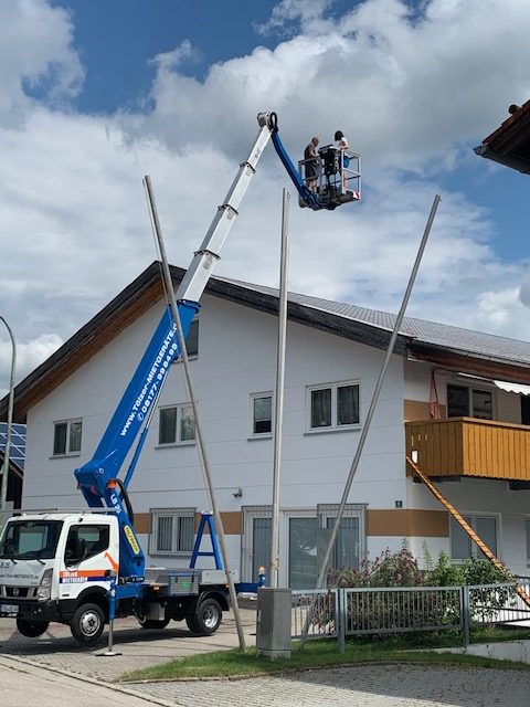 Da wir ein renommierter Dachdeckerbetrieb sind, wurde für die Dachsanierung eine Plattform gebaut, um unser Airlessgerät platzieren zu können.