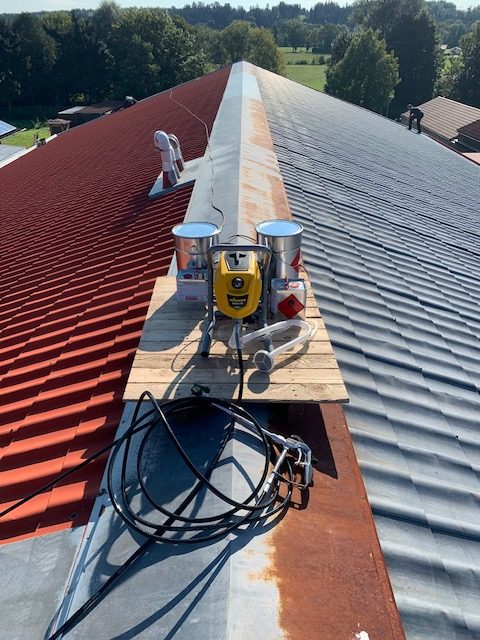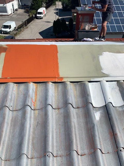 Es wurde mit dem Kunden ein Vorort Termin zwecks Besichtigung sowie Probeanstrich vereinbart, um zu sehen, ob hier überhaupt eine Dachsanierung / Dachbeschichtung möglich ist.