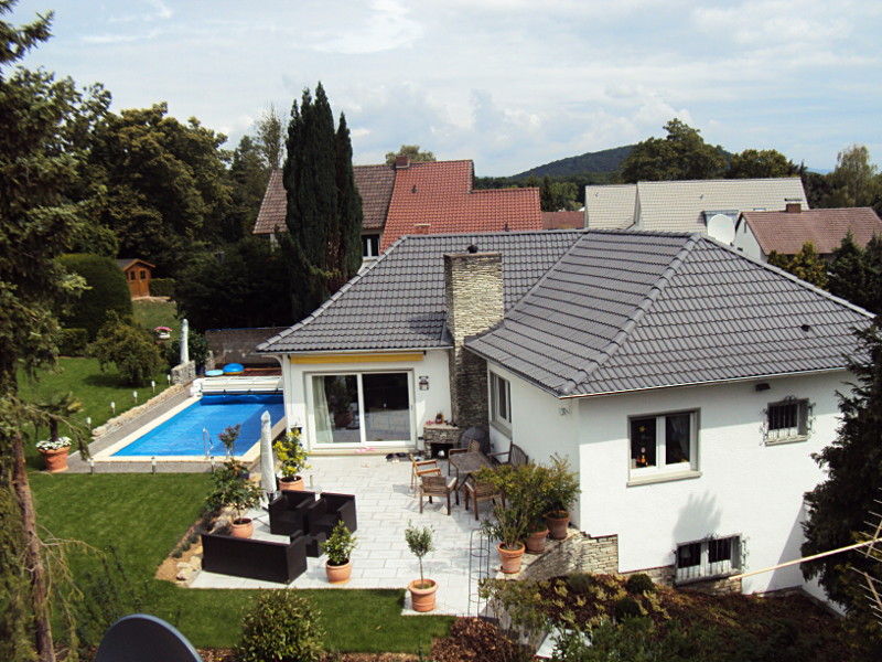 Zugegeben, 45 Jahre sind für ein Ziegeldach schon eine Zeit, nach der wir die Substanz erst einmal ganz genau prüfen, bevor wir zu einer Dachbeschichtung ansetzen. Nach dieser Zeit ist es gut möglich, dass eine Neueindeckung des Daches notwendig ist. In diesem Fall gab unser Team nach einer Reinigung und gründlichen Prüfung aber gerade noch sein OK. So konnten wir das ursprünglich rote Dach grundieren und dem Farbwunsch der Hauseigentümer gemäß in Anthrazit beschichten. Jetzt ist es wieder witterungsbeständig, verleiht dem hochwertigen Haus und Grundstück auch optisch die passende Krone – und aufgrund unserer Erfahrung und hochwertigen Arbeit hat das Dach auch unsere 10-Jahres-Garantie auf die Beschichtung erhalten!