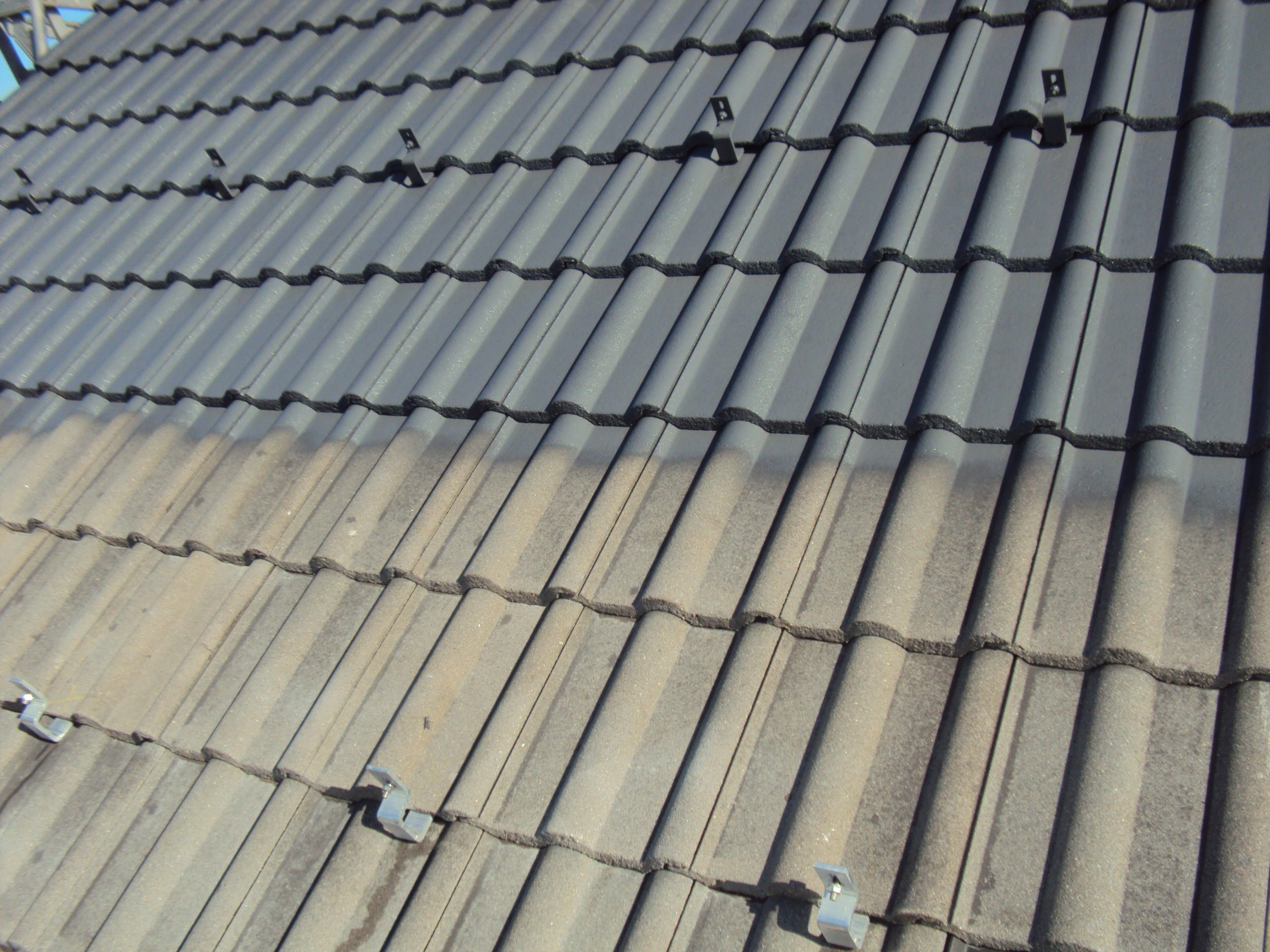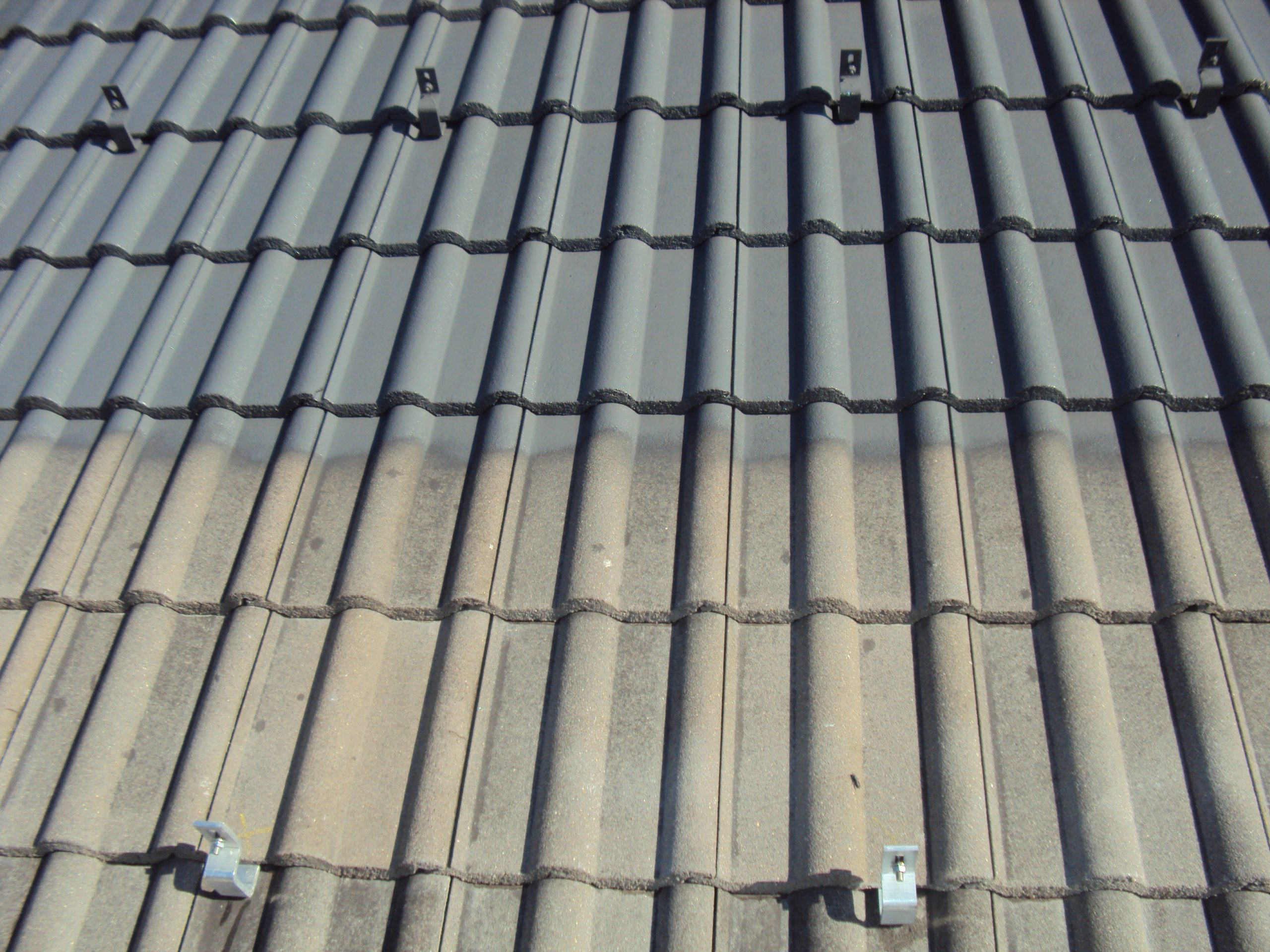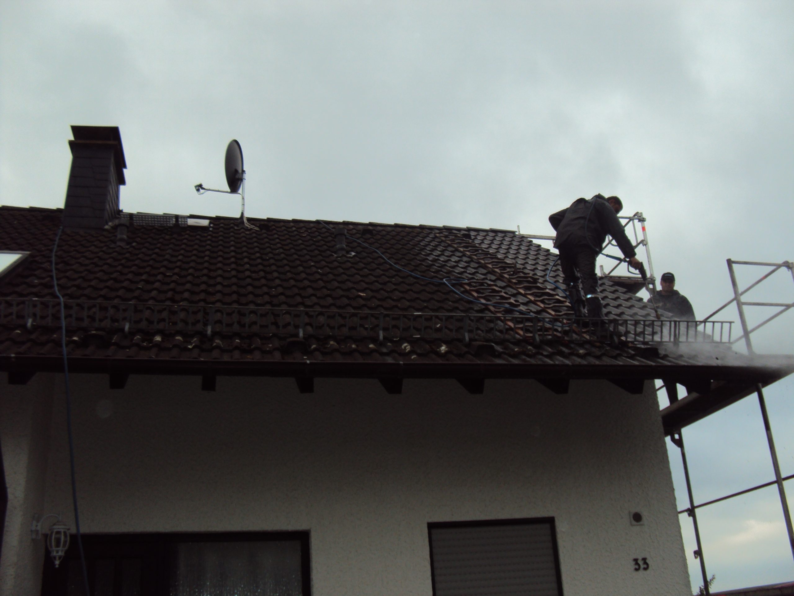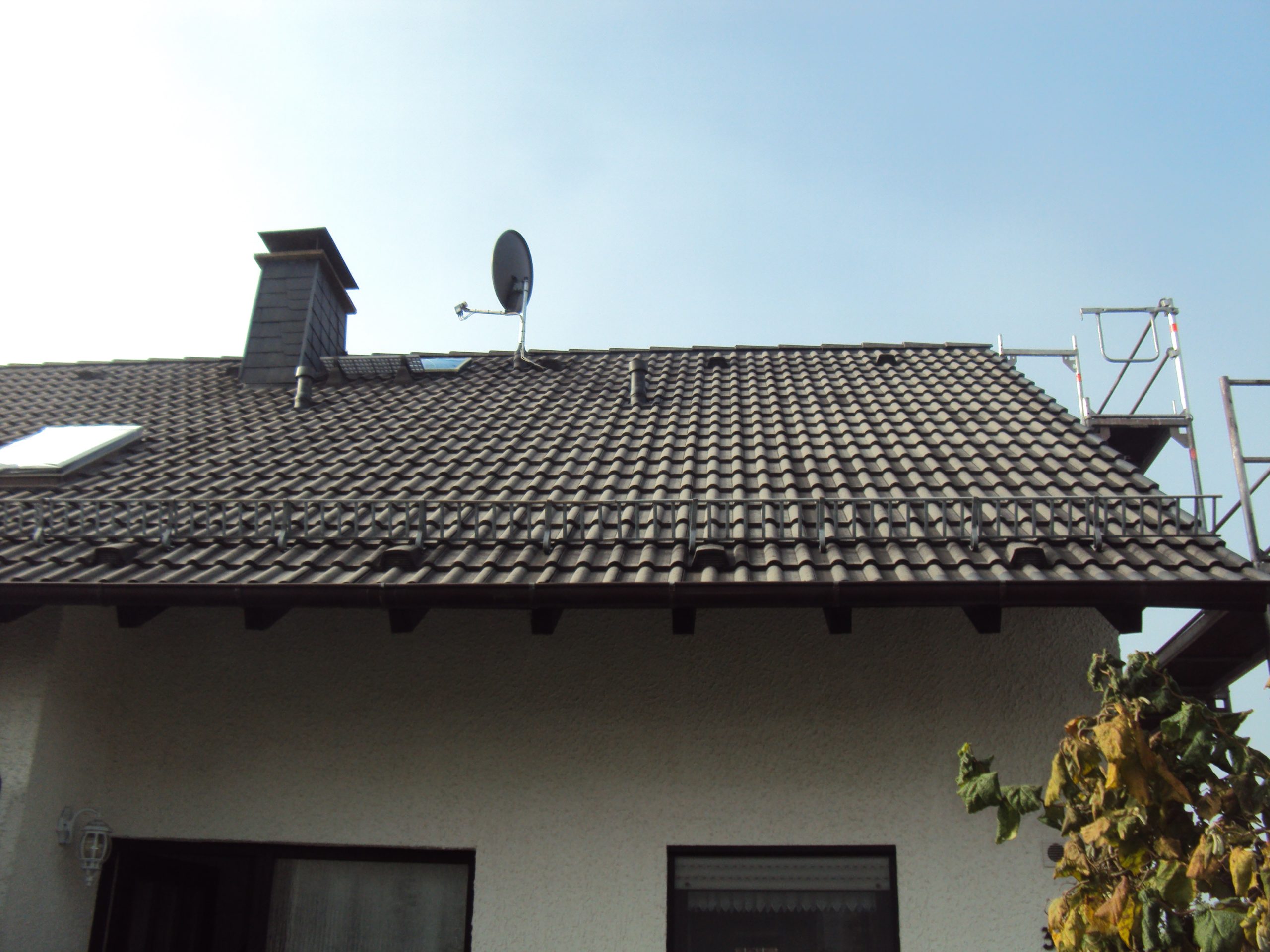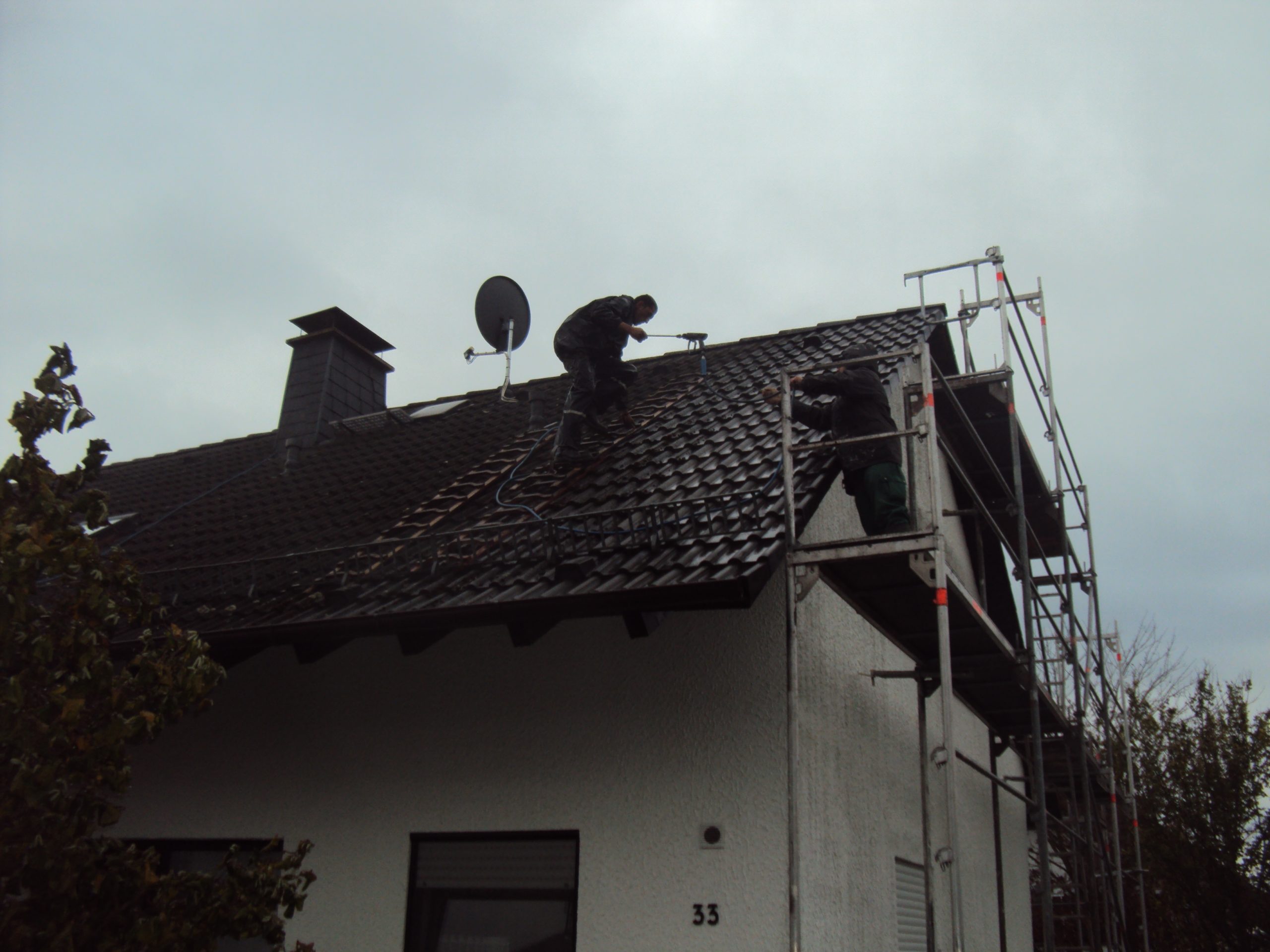 Gerade für die Besitzer von Solaranlagen auf dem Dach ist eine Dachsanierung natürlich eine heikle Angelegenheit. Soll das Dach komplett neu gedeckt werden, muss die gesamte Anlage abmontiert und später auf dem neuen Dach erneut montiert werden – eine aufwändige und kostspielige Angelegenheit. Da die Substanz des Daches noch intakt war, konnten wir hier eine professionelle Reinigung und Dachsanierung vornehmen. Die Hauseigentümer haben sich dafür entschieden, die mittlerweile stark verblasste Originalfarbe der Dachziegel von uns wieder herstellen zu lassen. Das ist uns ohne Demontage der Solaranlage gelungen. Natürlich wie immer mit unserer 10-jährigen Garantie auf die Dachbeschichtung bei Betonziegel.
