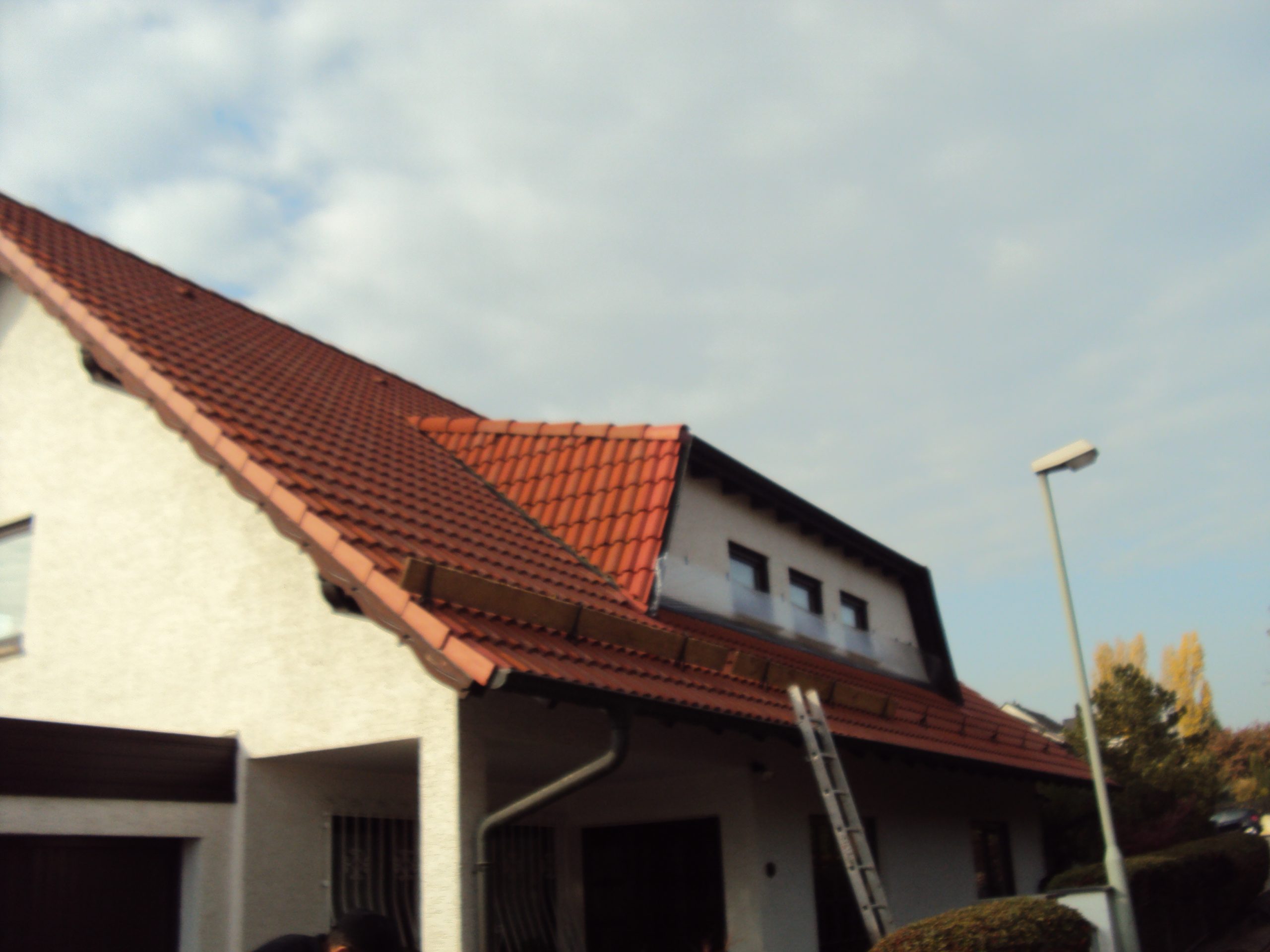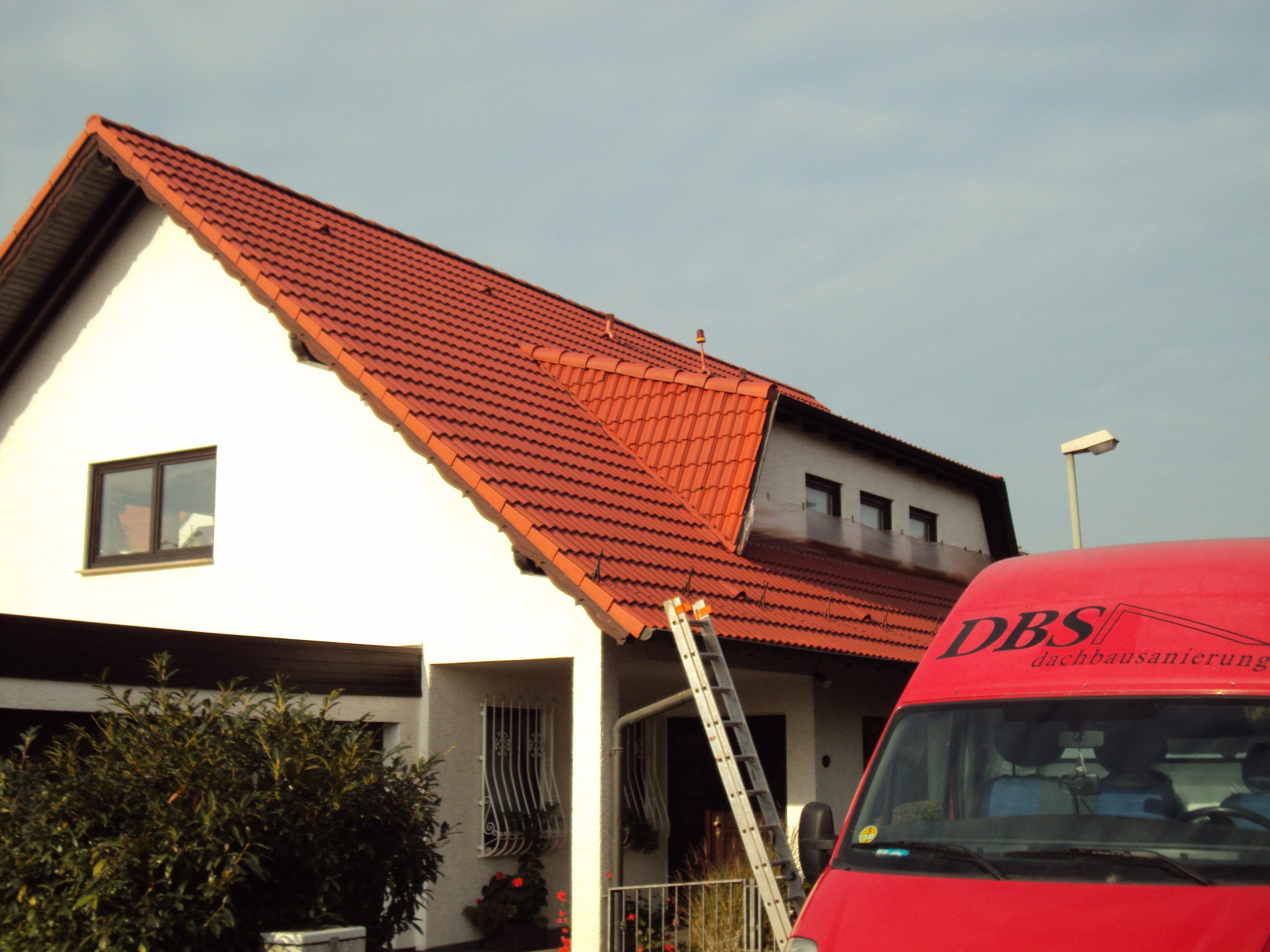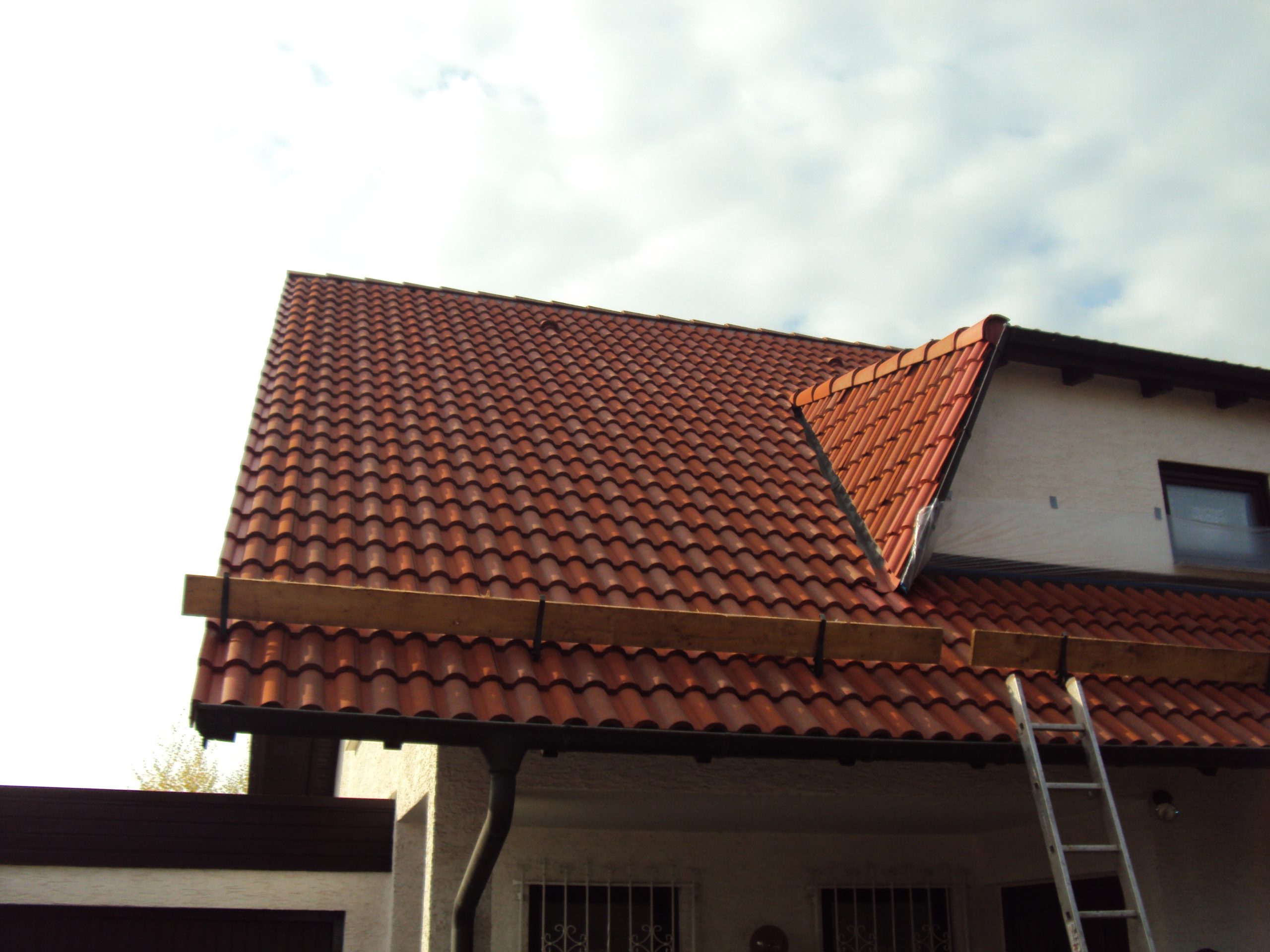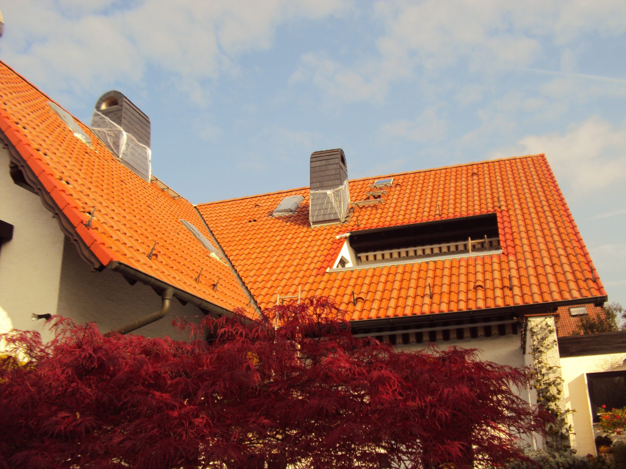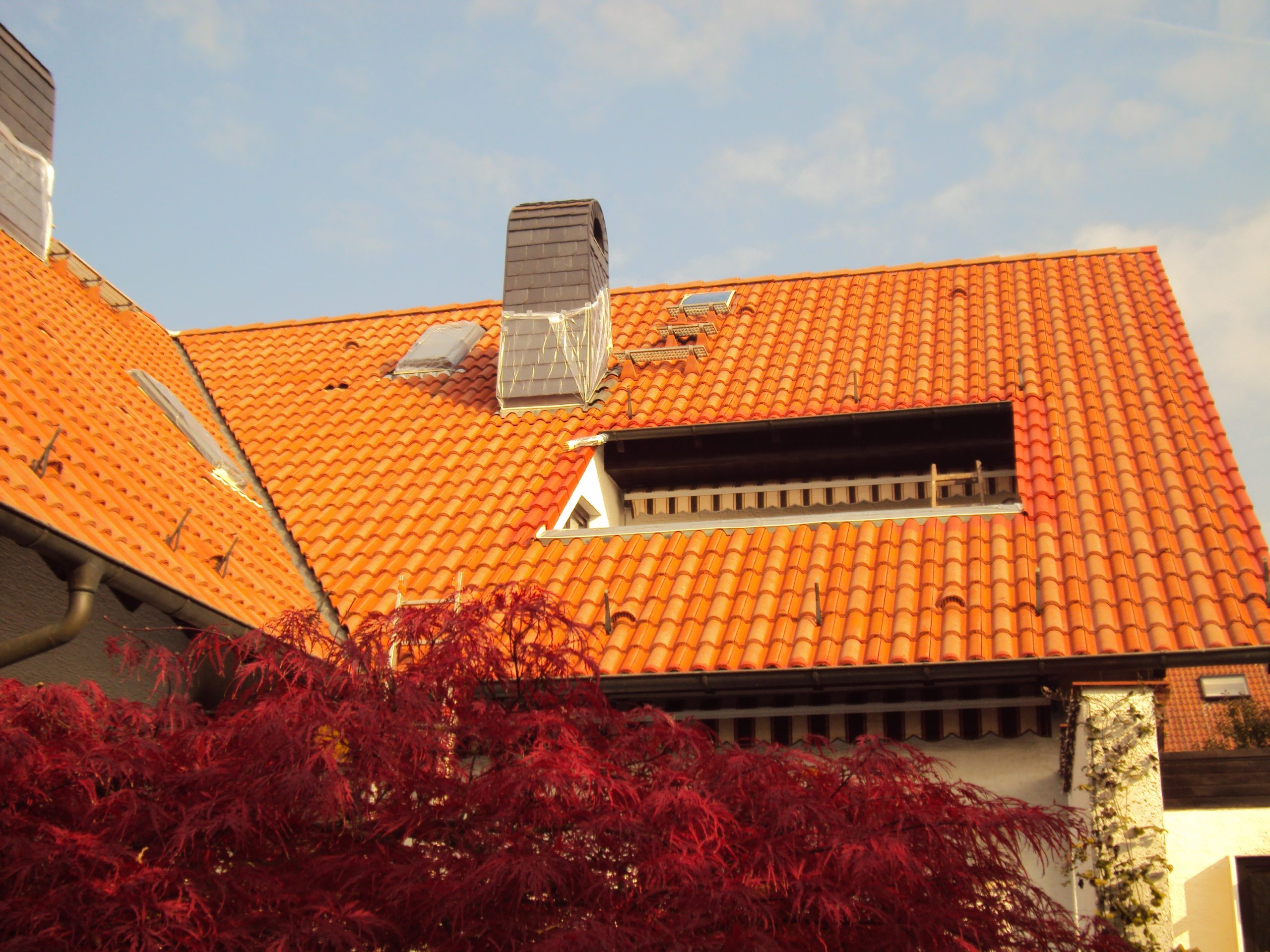 Sanierung eines Satteldaches mit Gaube und Loggia mit Dachbeschichtung in Ziegelrot