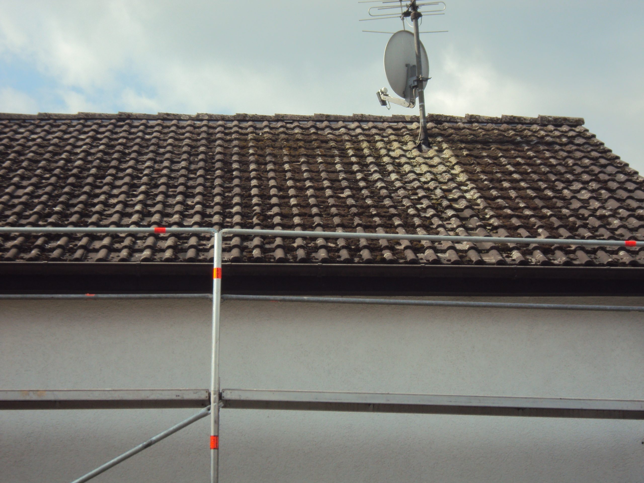 Gerüstbau, Dachsanierung und Beschichtung einer Schiefer-Fassadenverkleidung