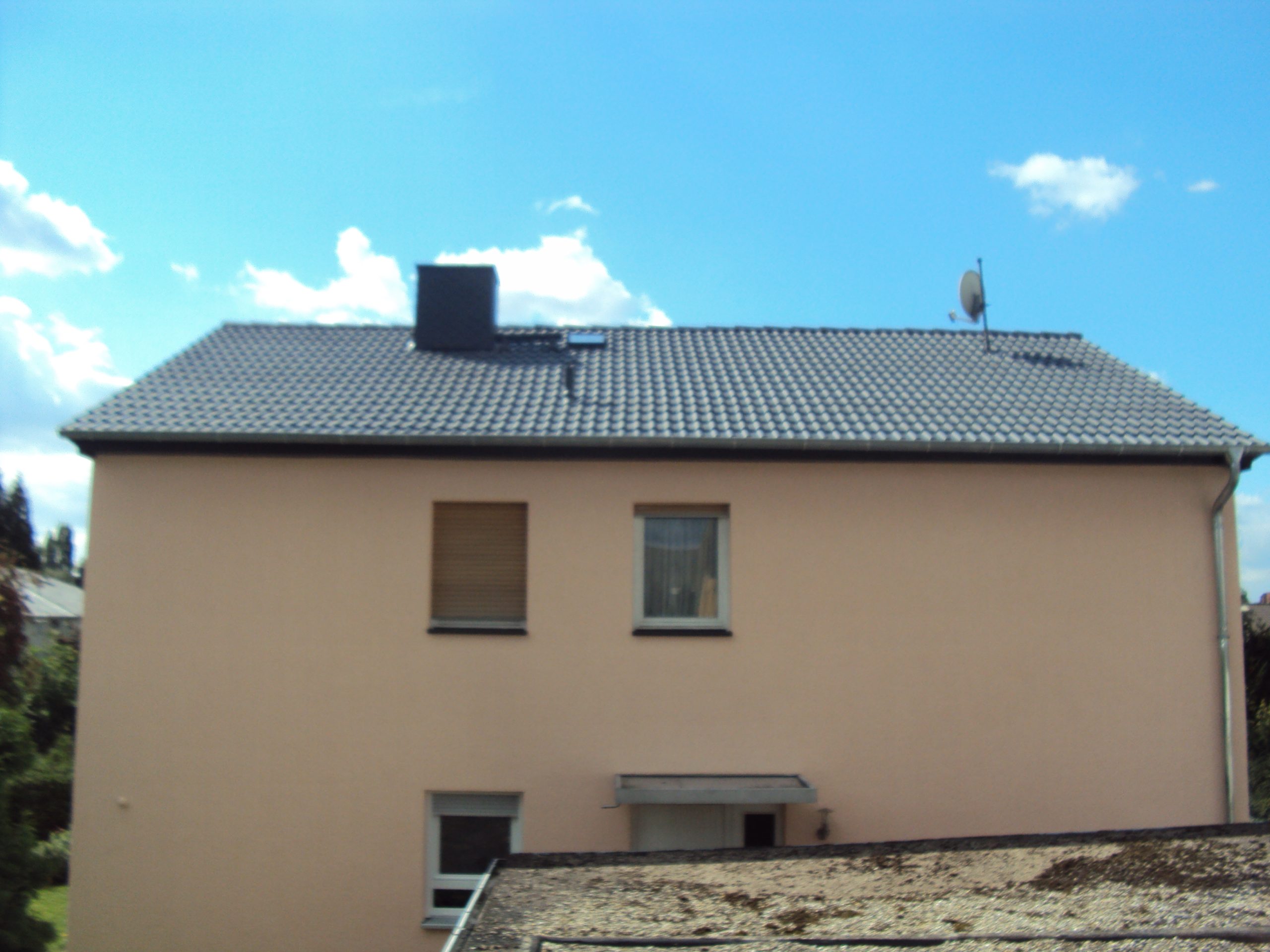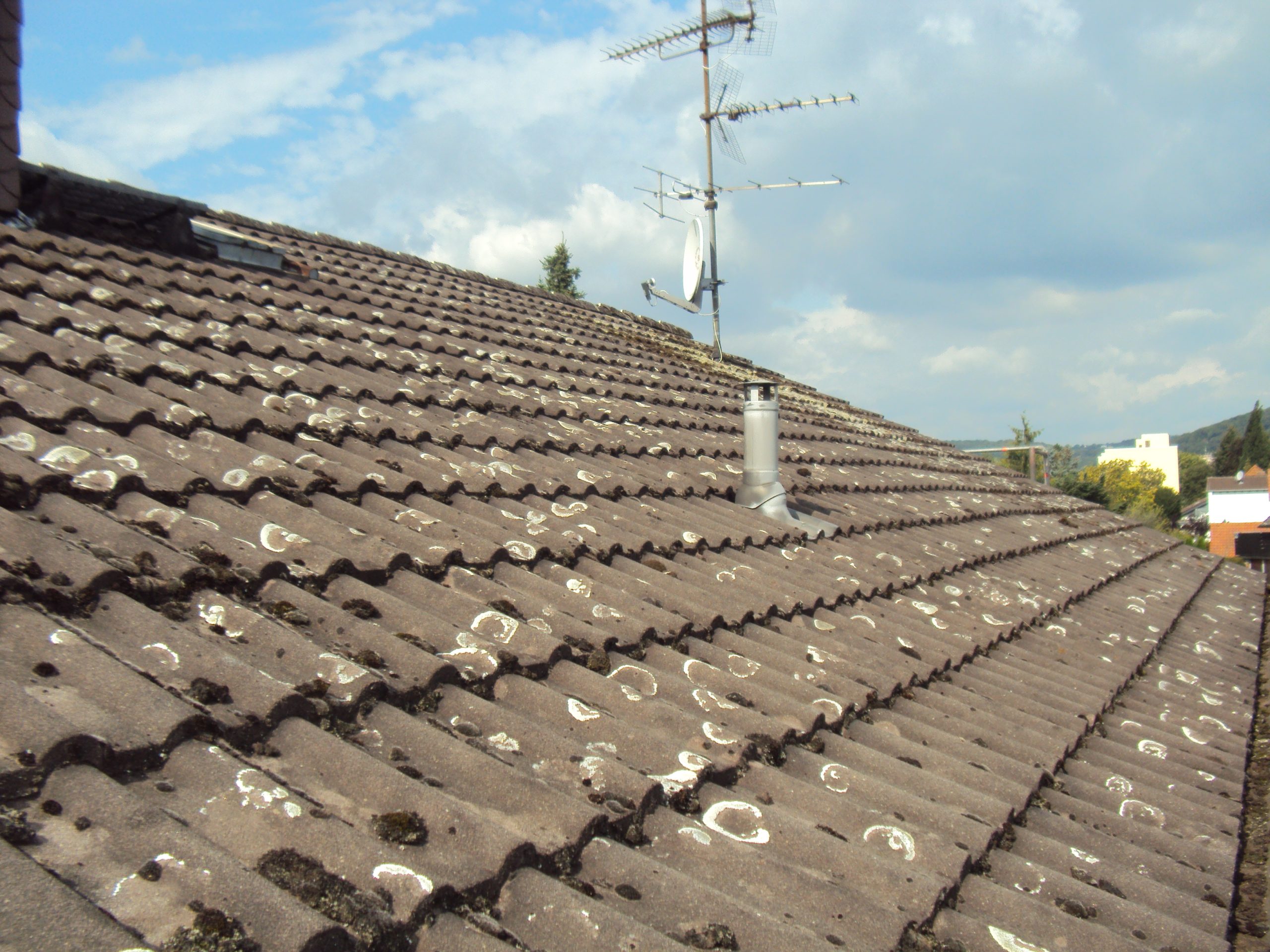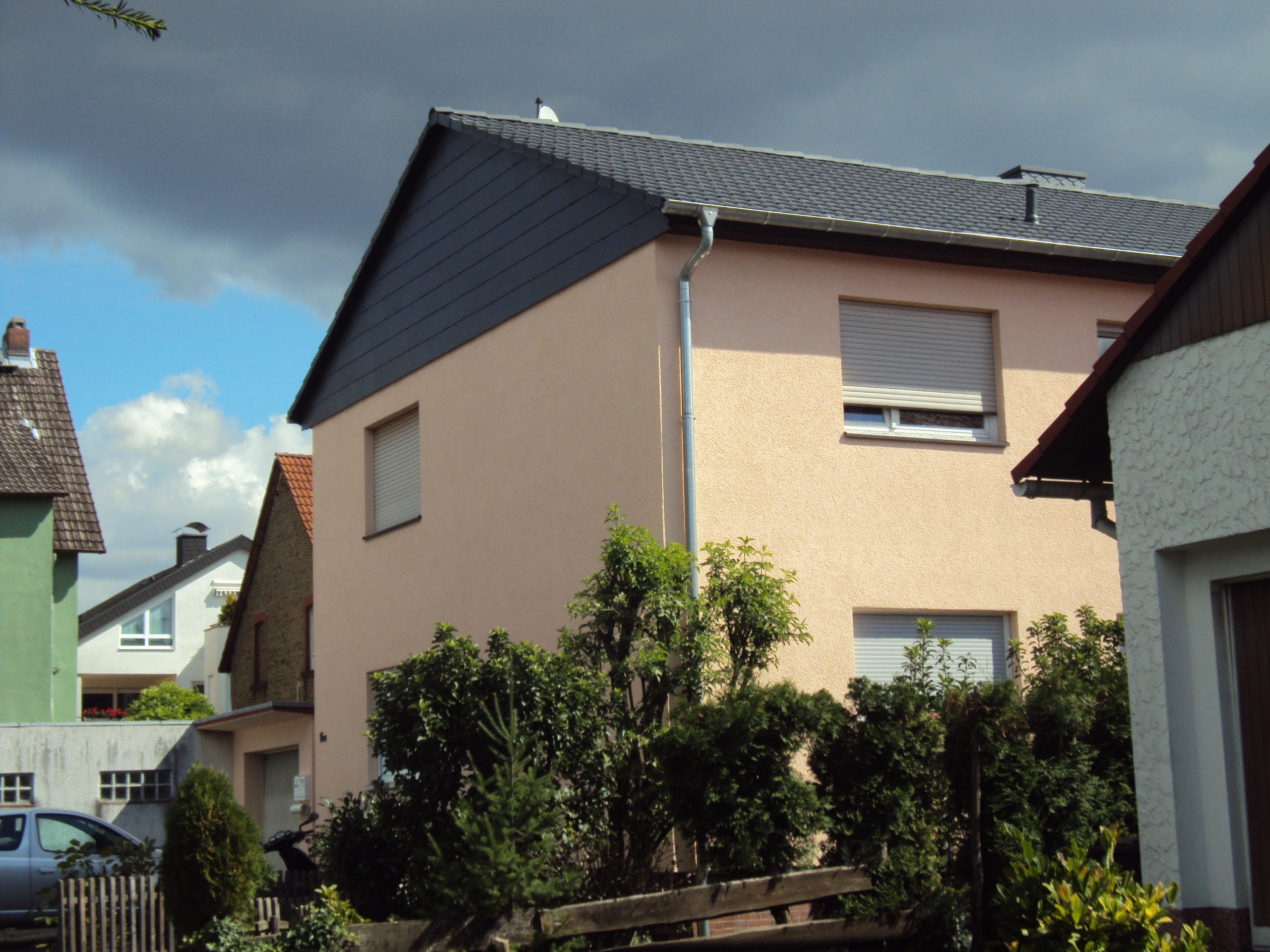 Auch dieses Haus in Kriftel im Taunus hat eine beeindruckende Verjüngungskur erhalten. Wir haben den Gerüstbau übernommen, das Dach fachmännisch gereinigt, grundiert und in der Wunschfarbe dauerhaft beschichtet. Bei dieser Immobilie ist auch der Giebel verkleidet. Nach entsprechender Vorbehandlung haben wir auch die Fassadenverkleidung aus Schiefer passend beschichtet. Der Hausherr hat im selben Zuge die gesamte Fassade noch streichen lassen, so dass das Haus nach Abbau unseres Gerüstes vom Dachfirst bis zum Boden in neuem Glanz erstrahlt.