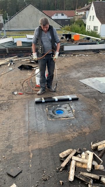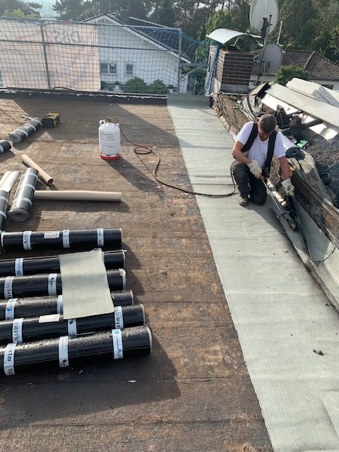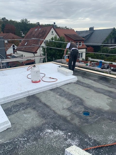 Flachdachaufbau mit Dämmung und Fassadensanierung