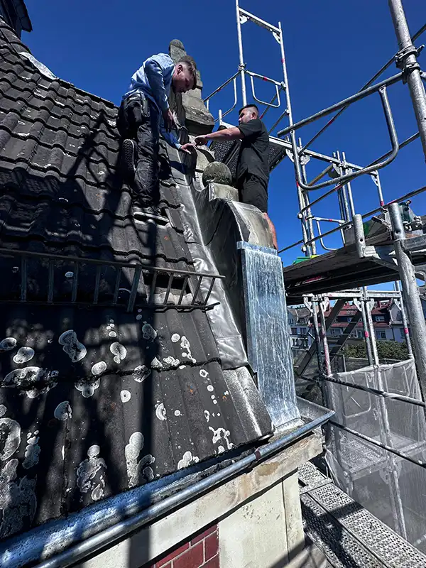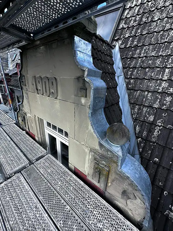 Historisches Gebäude komplett eingerüstet und Spenglerarbeiten ausgeführt.