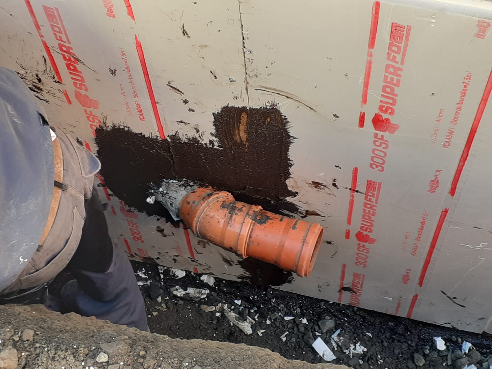 Die Außenwand wurde freigelegt, eine Wandhälfte war porös und nicht mehr in Funktion. Hier haben wir die Wand mit Stahlbeton verstärkt, so wurde eine Basis für die Abdichtung geschaffen.