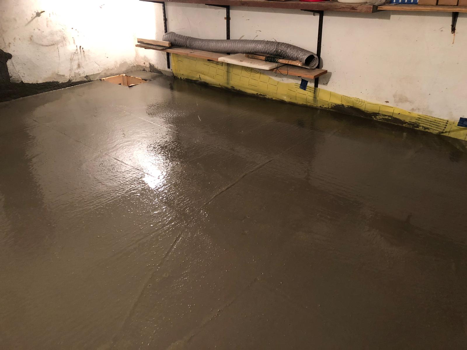 17. Boden geglättet und mit Flüssigabdichtung gestrichen inklusive Sockel 20cm hoch