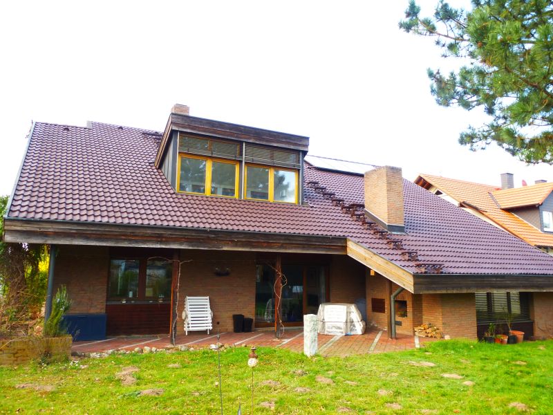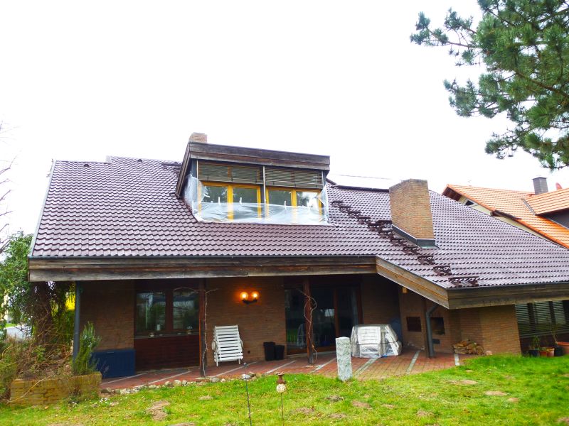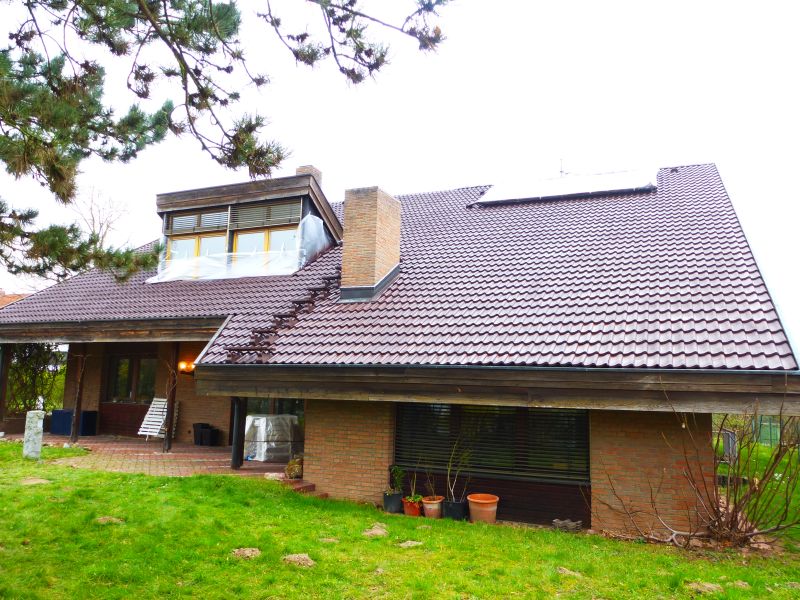 Dieses herrliche Einfamilienhaus in Potsdam verfügt über eine außergewöhnliche Dachkonstruktion, die nicht nur für ebenso interessante wie gemütliche Innenräume sorgt, sondern auch die Blicke der Passanten auf sich zieht. Wie schade ist es dann, wenn das Architektendach unansehnlich geworden ist, von Moos bewuchert, von Flechten befallen und bereits in absehbarer Zeit durch Verwitterung beschädigt! Wir haben das Dach inspiziert, eine Substanz vorgefunden, die wir fachgerecht behandeln können und daraufhin die Doppel-S-Betonziegel gründlich gereinigt, grundiert und beschichtet. In einer Farbe, die Kunden nicht jeden Tag wählen, die den Charakter dieses Haus aber ebenso edel wie gemütlich unterstreichen – in Braun. Sehen Sie selbst, wie die Dachbeschichtung diesem schönen Haus zu einem neuen Glanz verliehen hat.