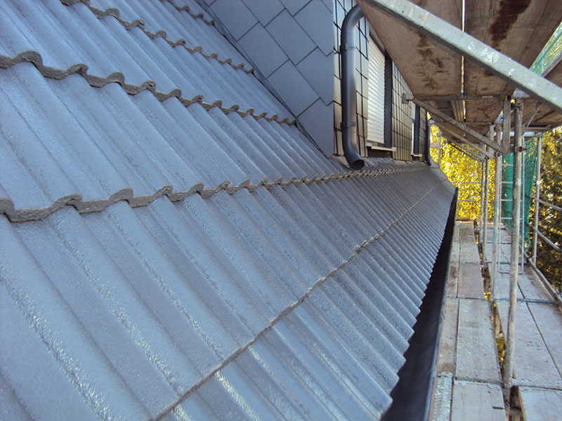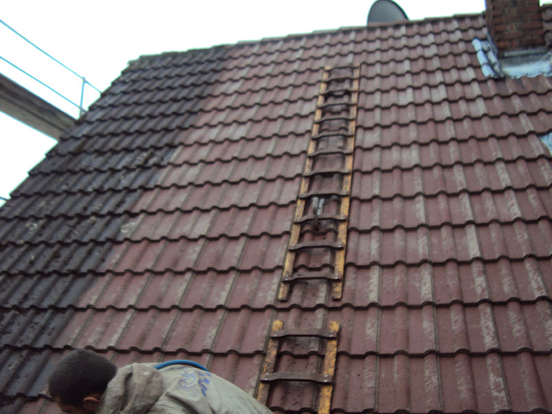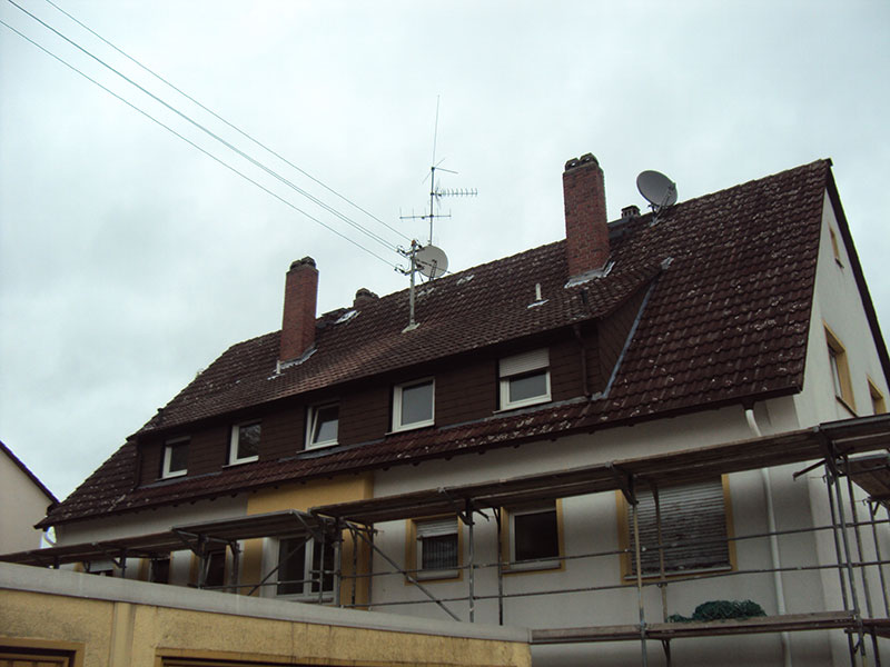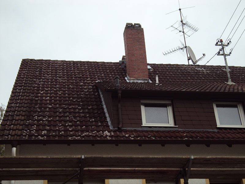 Das Dach dieses 6-Familien-Hauses in Augsburg ließ eigentlich kaum noch hoffen, dass eine Sanierung ohne Neueindeckung möglich wäre. Nach einer genauen und kritischen Überprüfung der Ziegel sowie des Dachstuhls konnten wir jedoch feststellen, dass wir grünes Licht für den Einsatz der DBS Dachbausanierung geben können. Die Ziegel waren zwar stark vermoost und von Flechten befallen sowie bereits porös geworden und den Wettereinflüssen immer stärker schutzlos ausgesetzt. Doch die Substanz war durch kompetente Behandlung noch zu retten. Nach einer fachgerechten Einrüstung des Objekts konnten wir die Tonziegel gründlich reinigen, grundieren und in der Wunschfarbe Anthrazit neu beschichten. In Zusammenarbeit mit einem Elektriker wurden die Stromleitungen neu isoliert. Das Vermietobjekt hat eine klare Wertsteigerung erfahren, bietet ein verbessertes Wohnklima und wartet mit einer verjüngten Optik auf.
